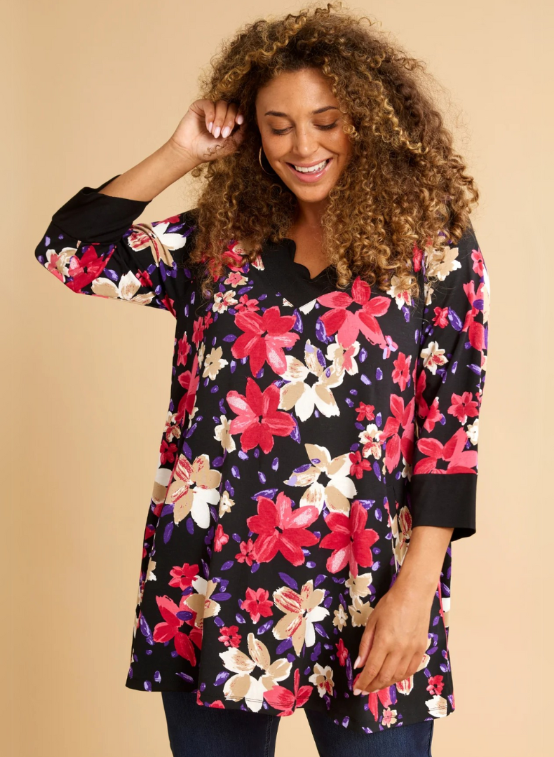 Efnið í túnikunni er teygjanlegt úr 92% viscose og 8% elastine.