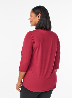 Rúnnað hálsmál og hálfar ermar sem ná niður fyrir olboga.