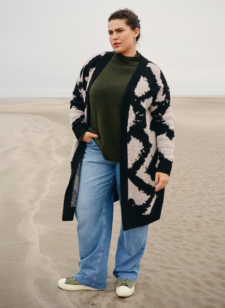 Mjúk og þægileg opin síð peysa frá danska merkinu ZIZZI.