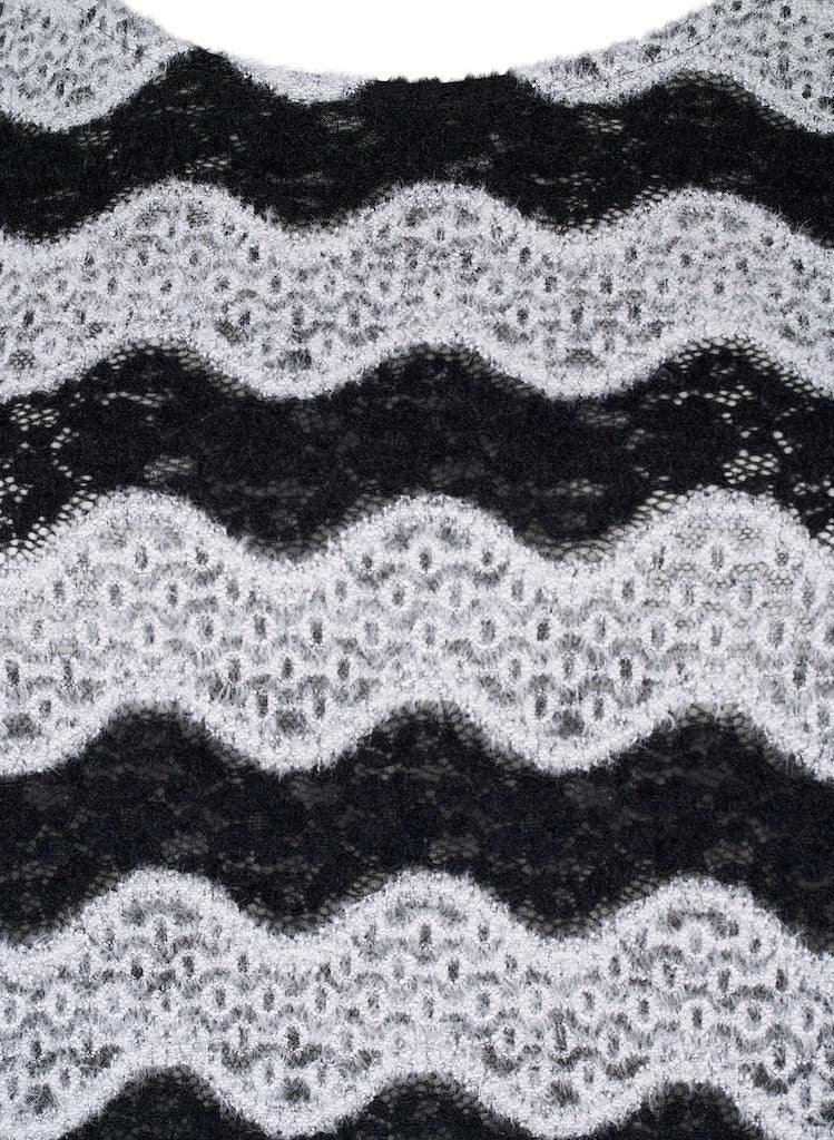Efnið í peysunni er fínlegt og einstaklega fallegt eins og prjónuð blúnda.