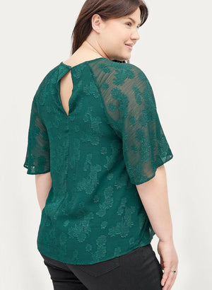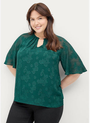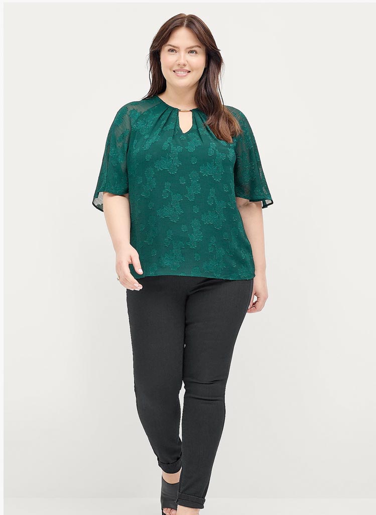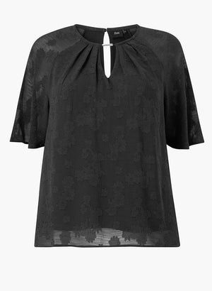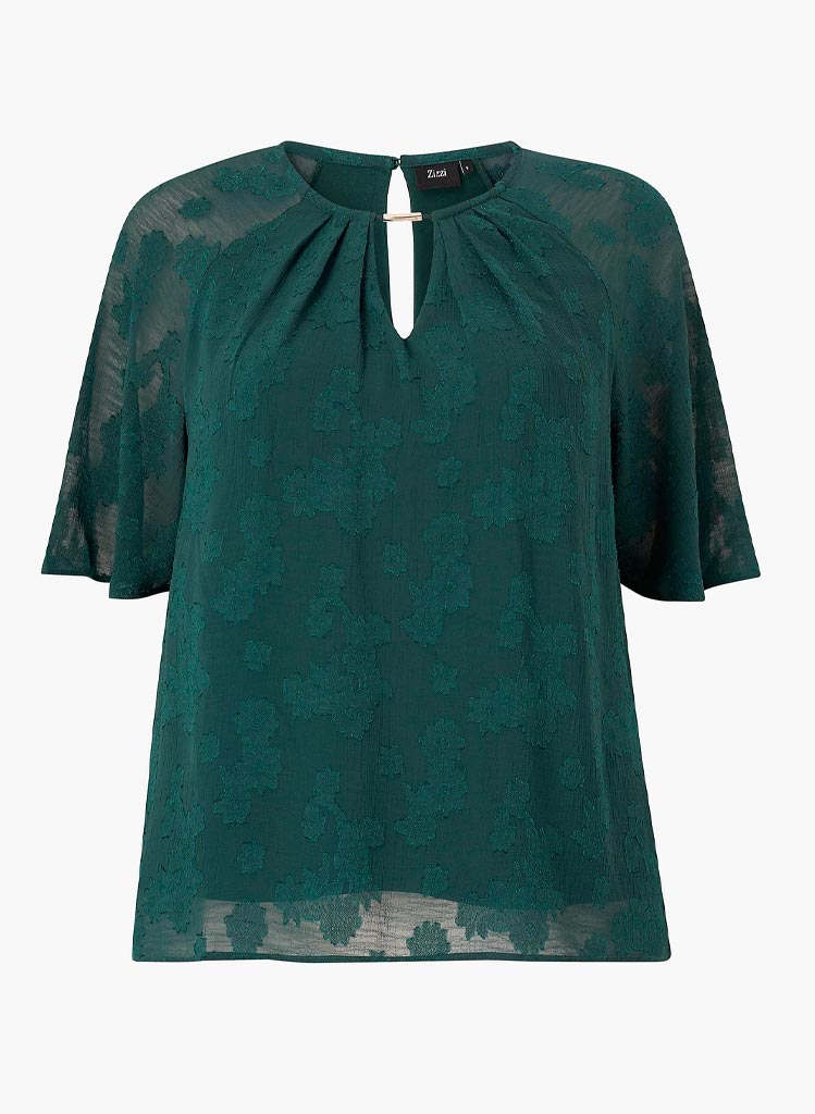 Blússan er í klæðilegu lausu sniði , olbogasíðar lausar ermar.
