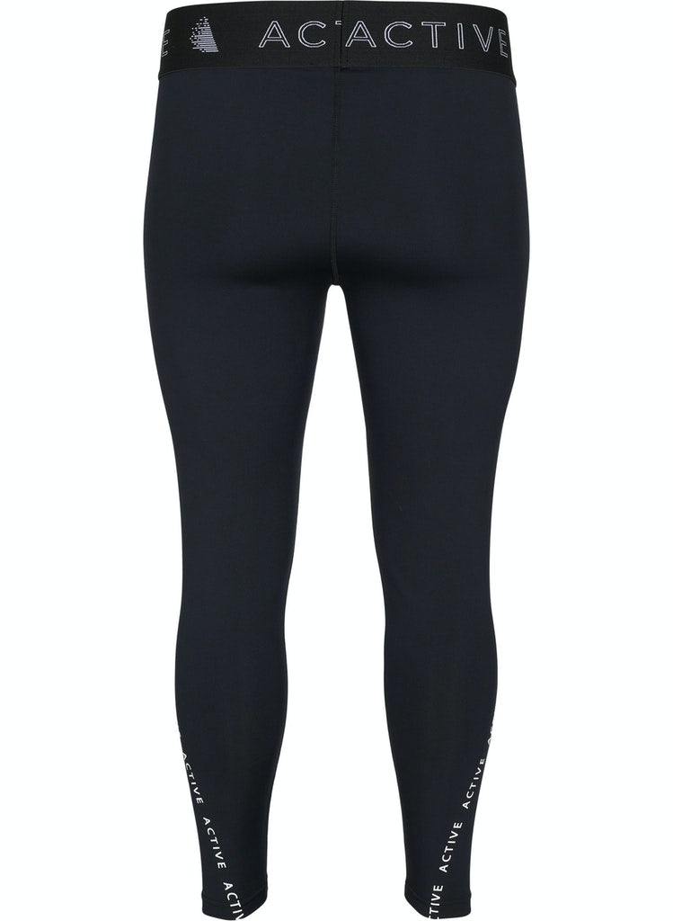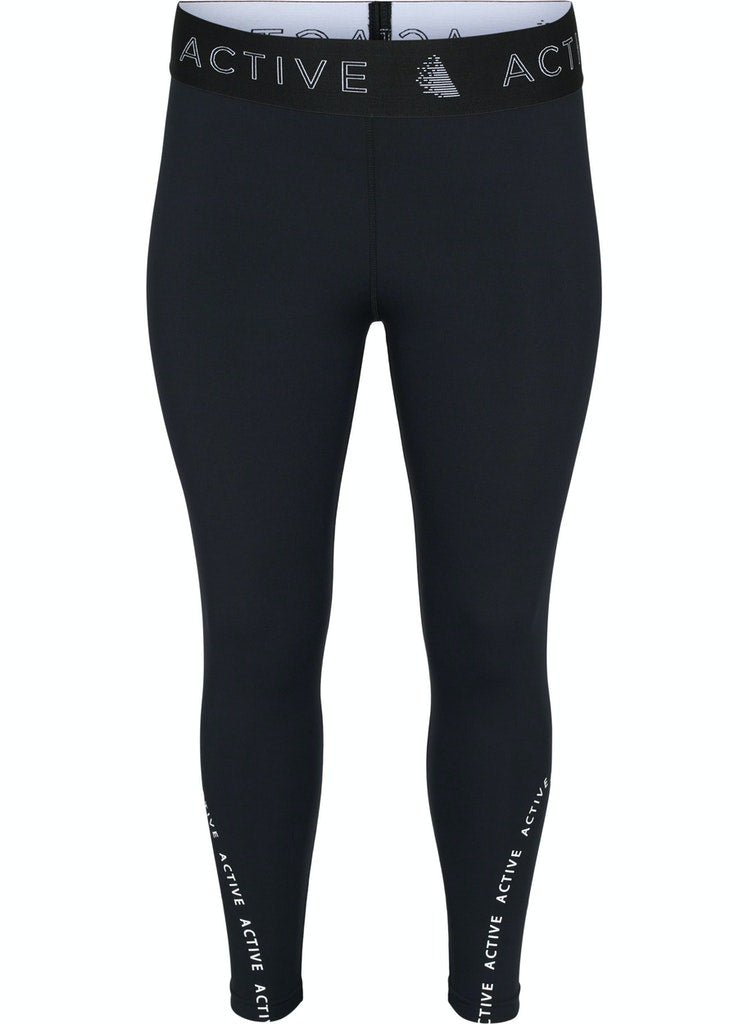 Hvítir prentstafir á hliðunum neðst á skálmunum