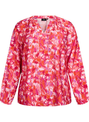 Falleg bleiktóna blússa með blómamynstri frá danska merkinu Zizzi.