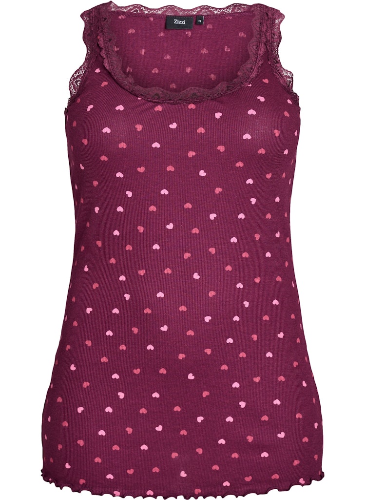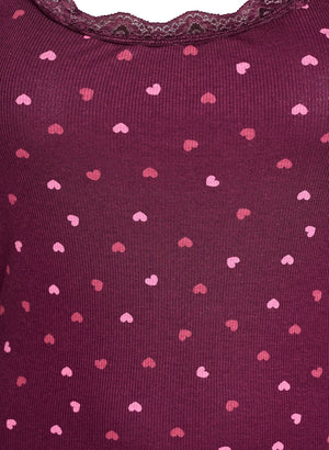 Fínleg blúnda við hálsmál og falleg riffluð áferð í efninu og hjarta mynstur.