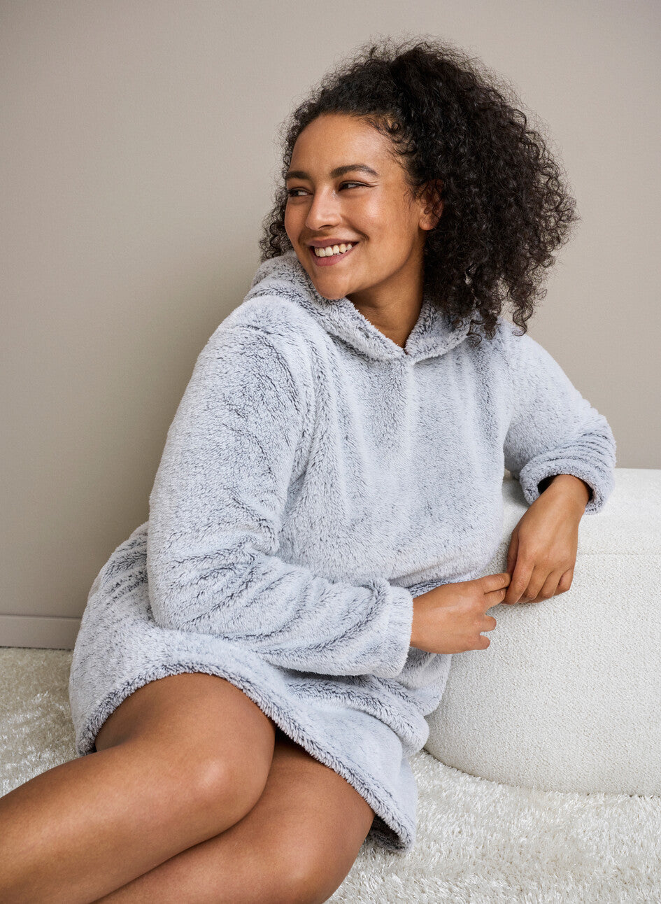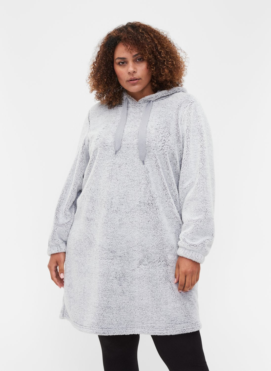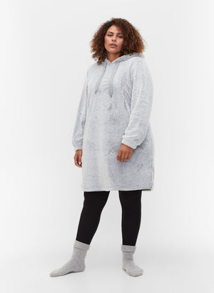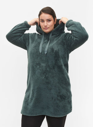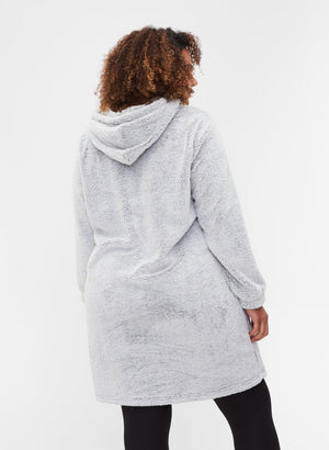 Síð loðin og súper kósý hettupeysa frá danska merkinu ZIZZI.