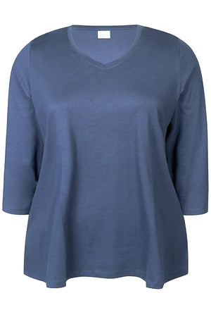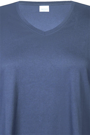 V-hálsmál og ermar sem ná niður fyrir olboga.