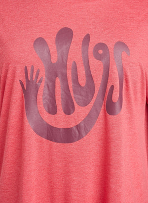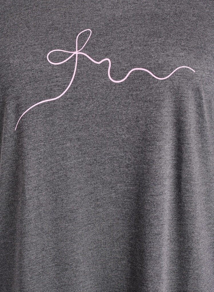 Rúnnað hálsmál, stuttar ermar og með áprentuðum stöfum að framan.