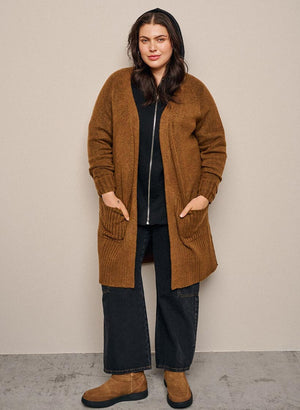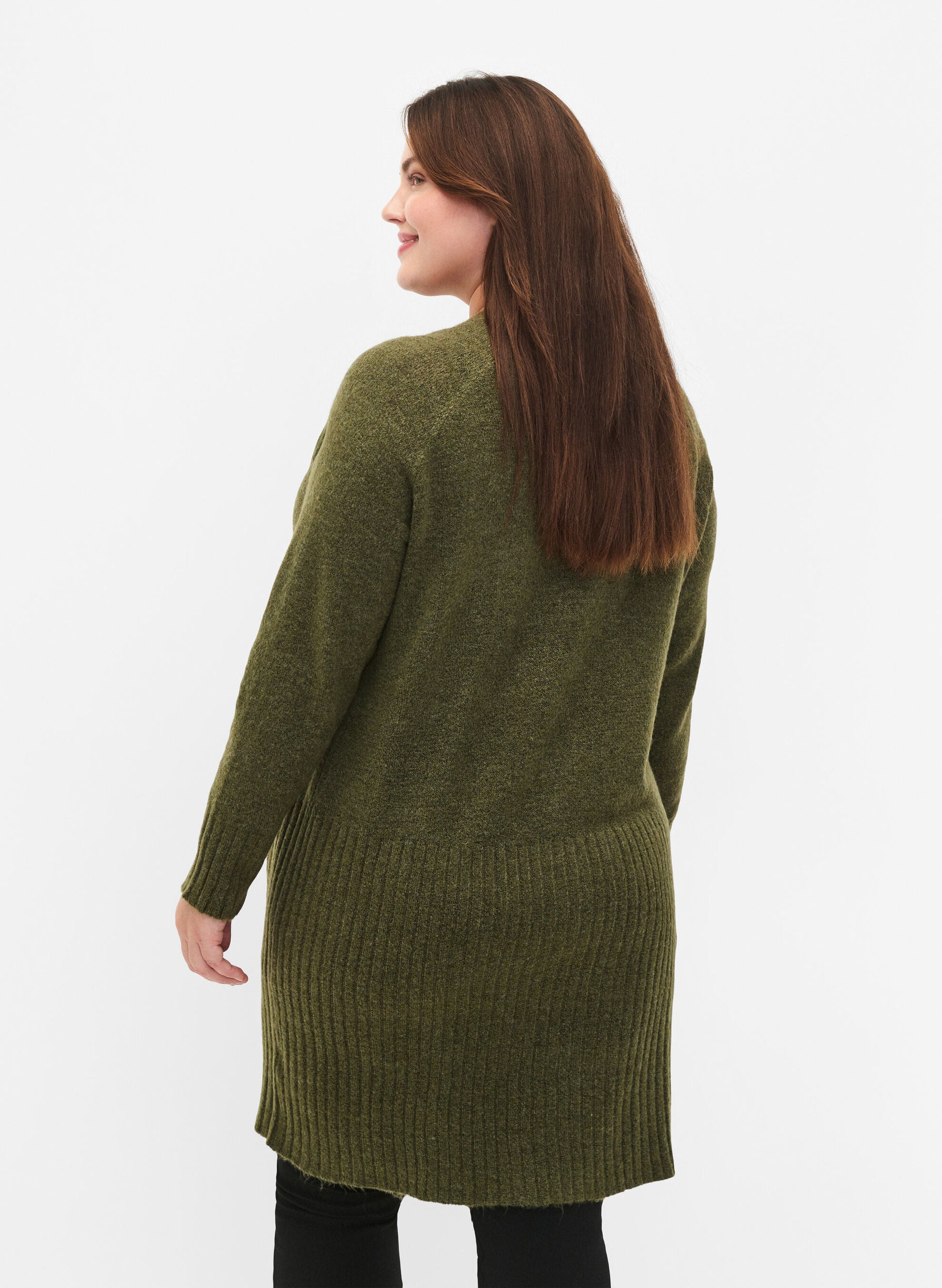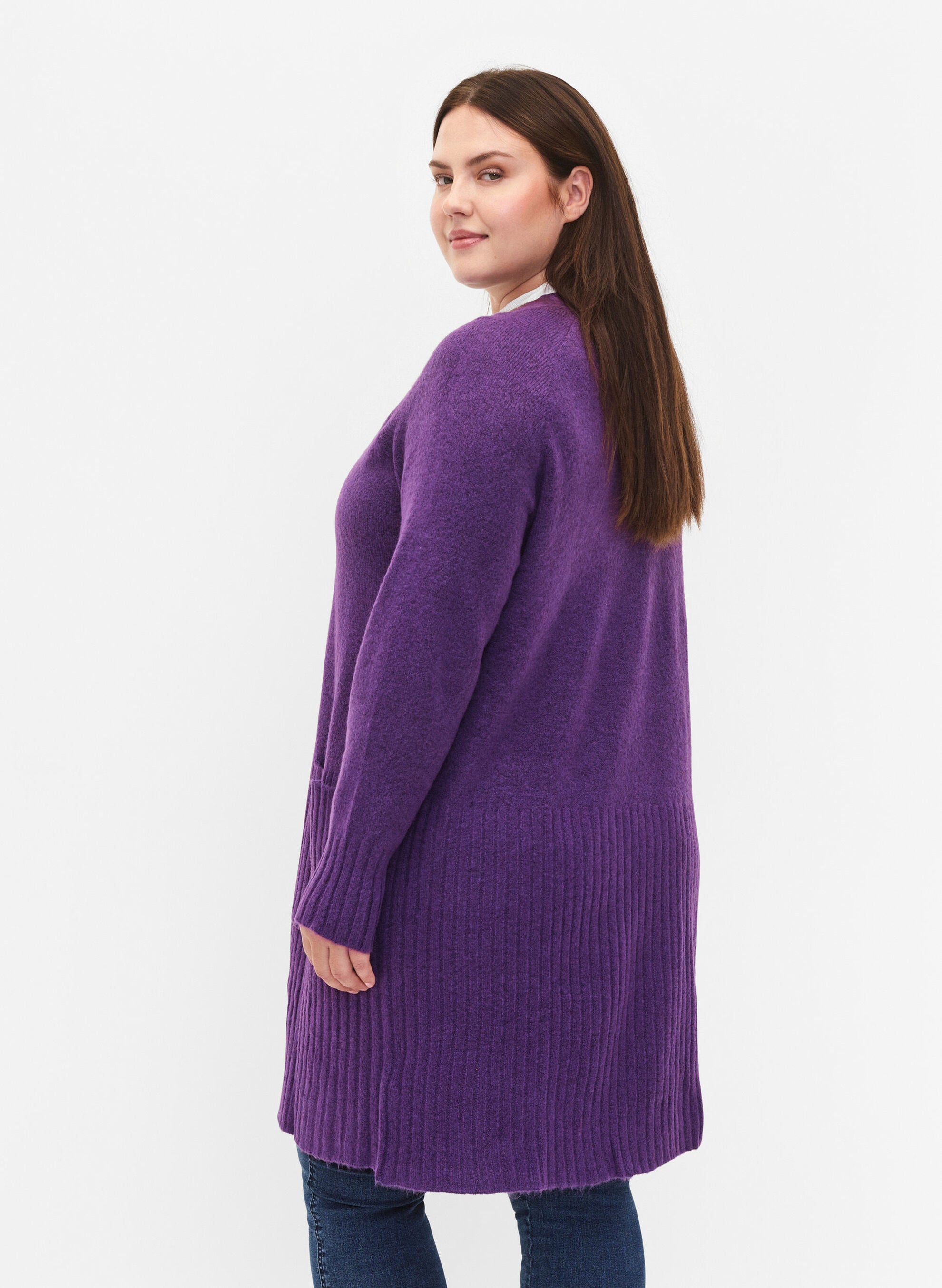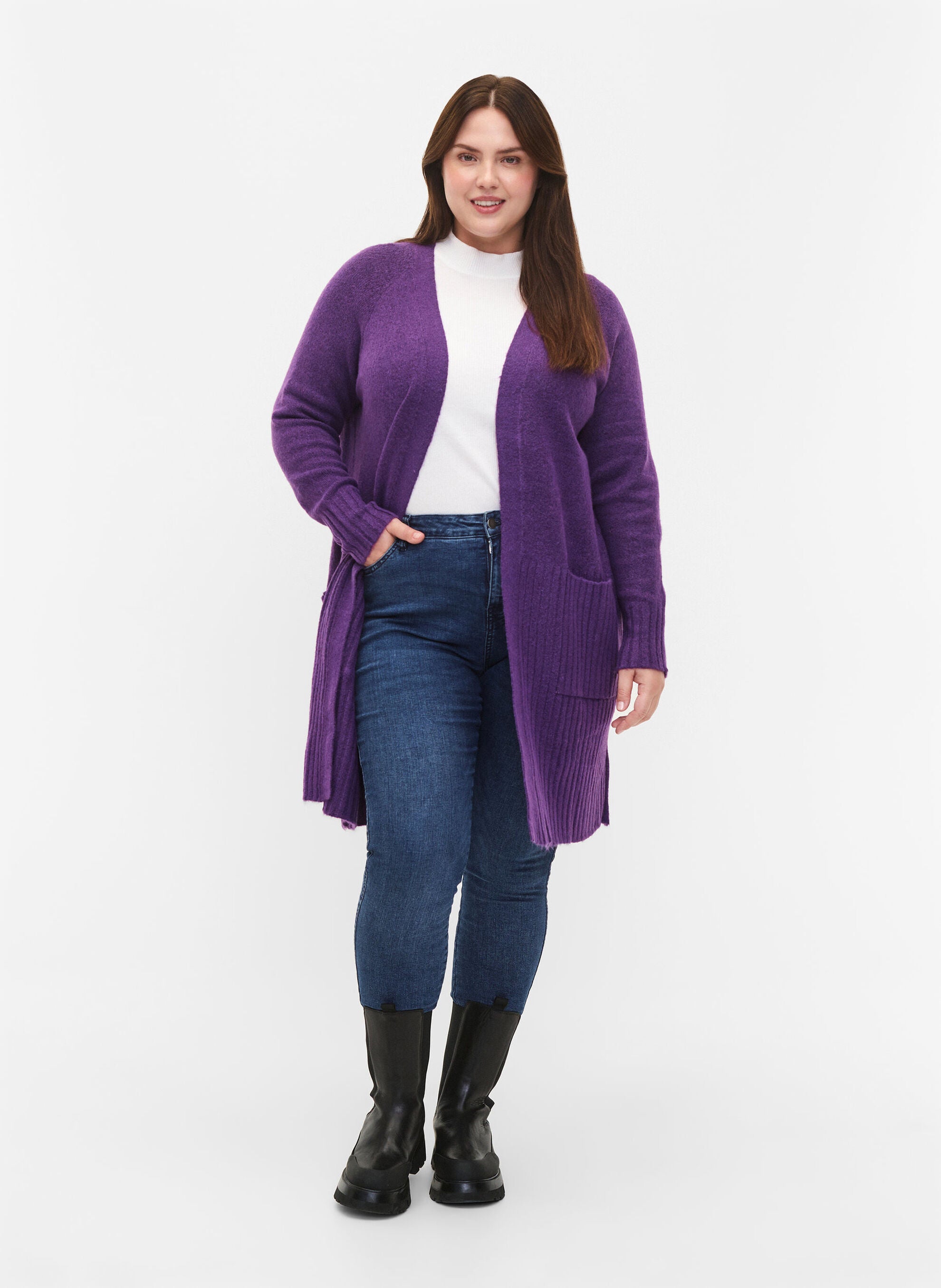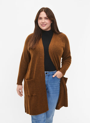 Síðar ermar og vasar að framan.
