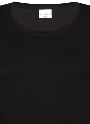 Rúnnað hálsmál, síðar ermar og aðsniðinn.