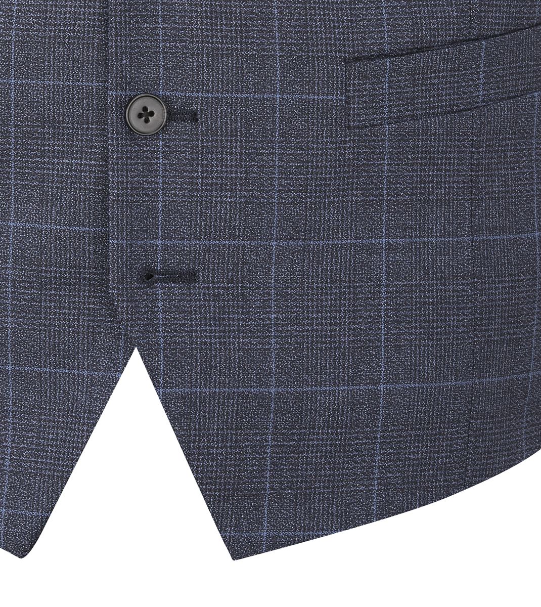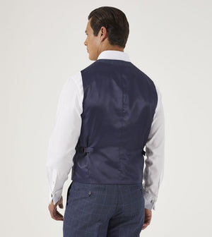Anello vestið er dökkblátt með köflóttu mynstri og fínlegt létt efni að aftan.