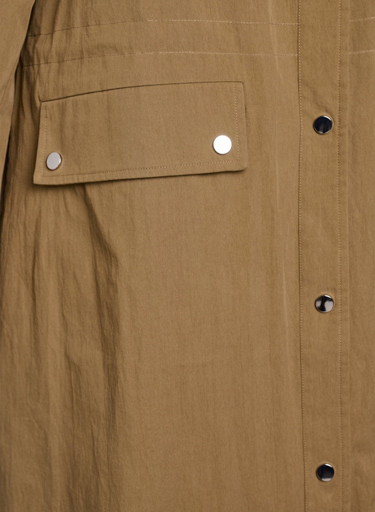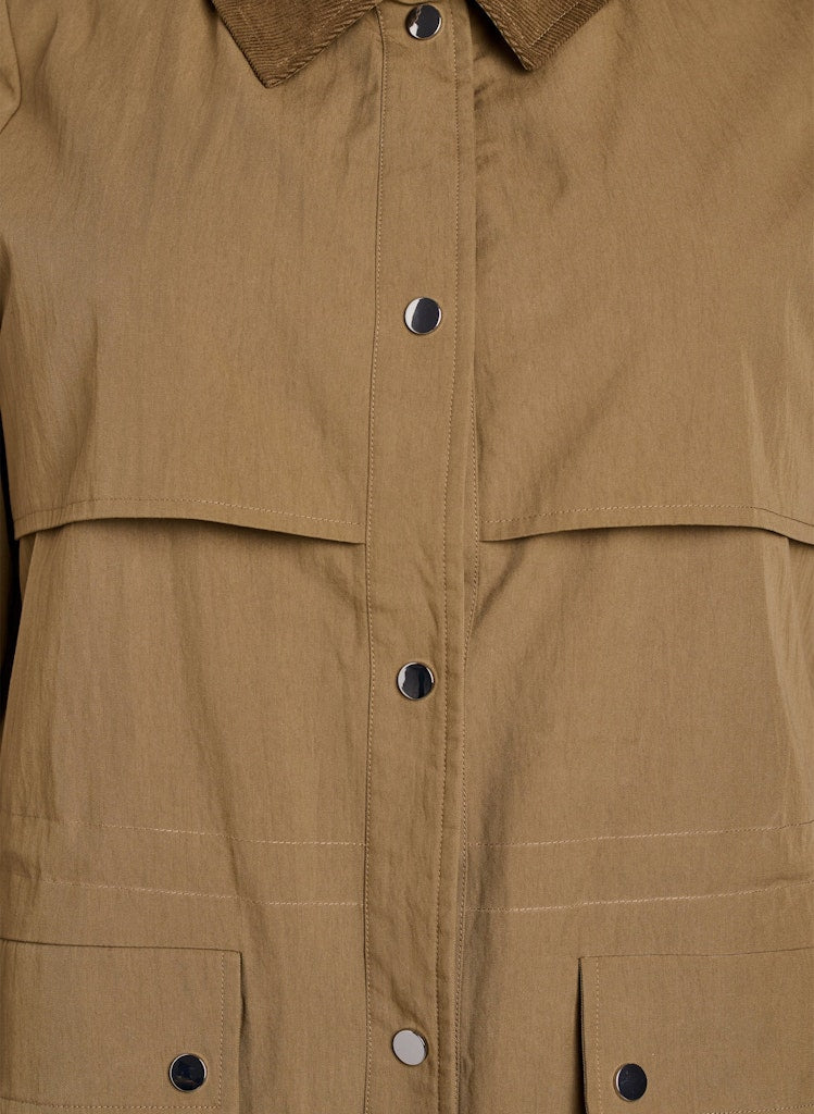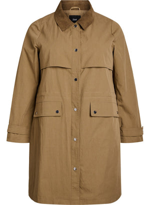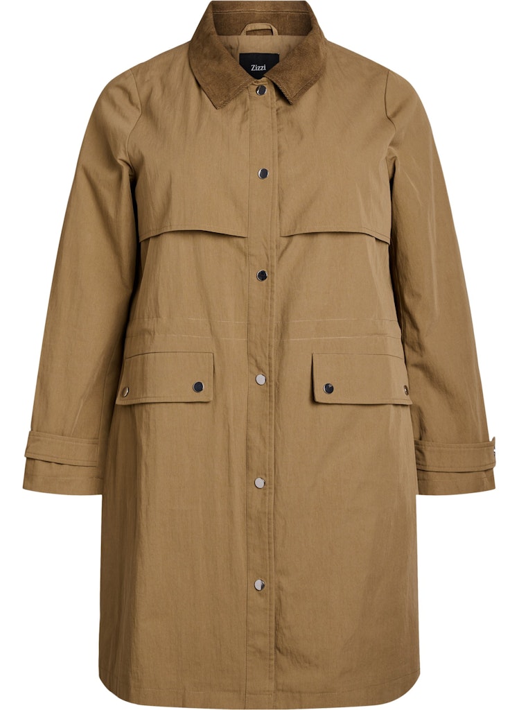 Jakkin lokast framan með smellum og er með rúmgóðum framvösum.