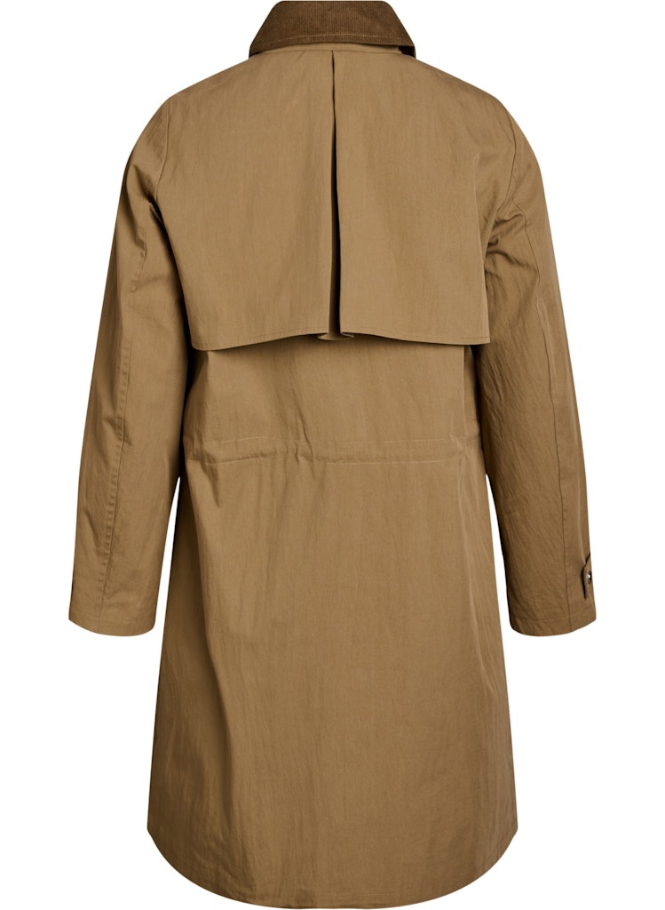 Síður jakki  úr léttu efni og mjúkum flauelskraga sem gefur jakkanum klassískt og elegant yfirbragð.
