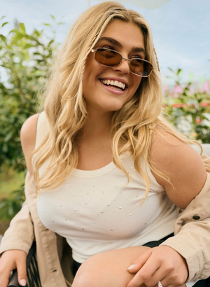 Efnið í toppnum er mjúkt og teygjanlegt: 95% bómull og 5% elastine.