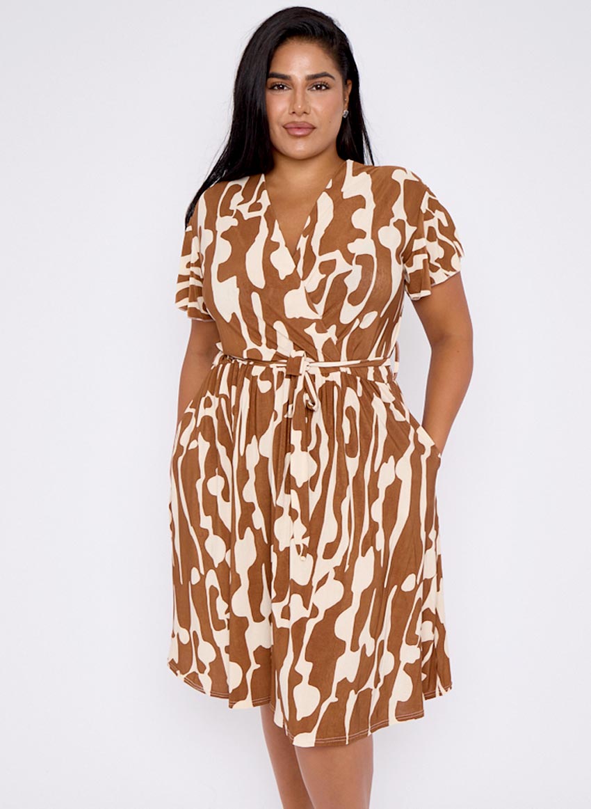 Wrap hálsmál, teygja í mittinu og mjög góð teygja í efninu.