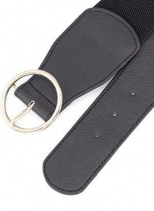 Beitt klassískt teygjubelti með kassalaga sylgju.