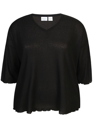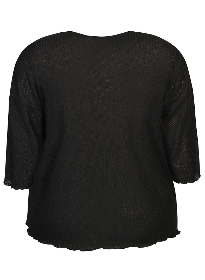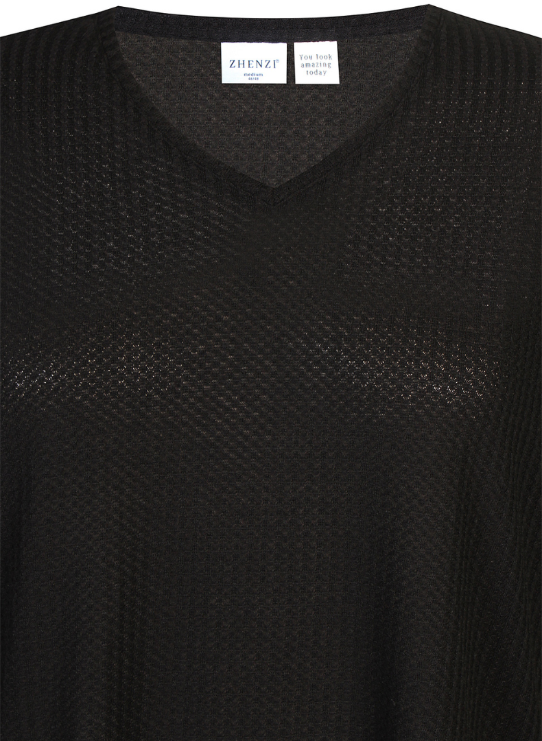 V-hálsmál, kvartermar og laust þægilegt snið.