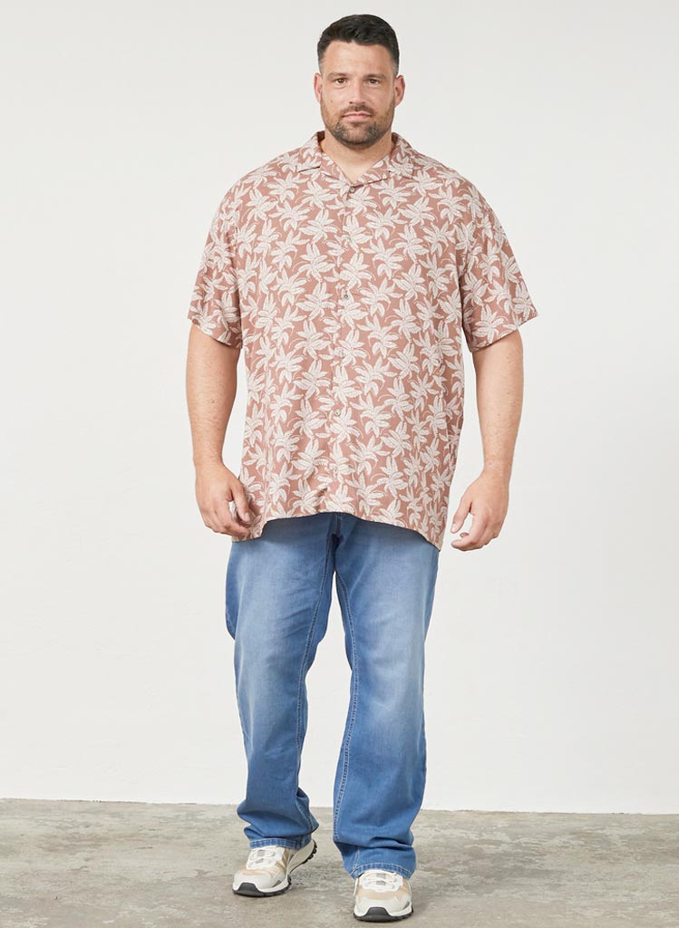 Hneppt alla leið með þæginlegu lausu sniði og cuban skyrtukraga.