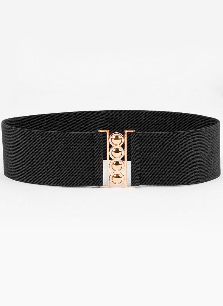 Svart teygjubelti með fallegri skrautsylgju að framan.