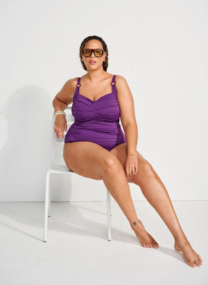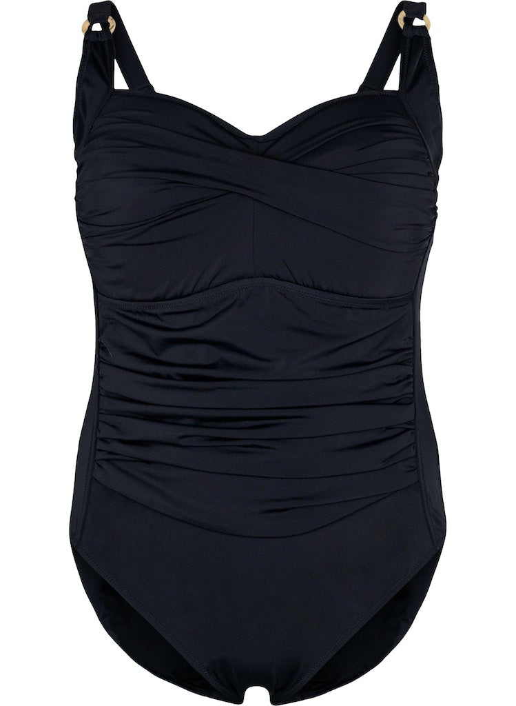 Sundbolurinn er með rykkingum yfir maga og góðum stillanlegum hlýrum með skrauthringjum.