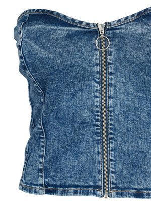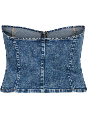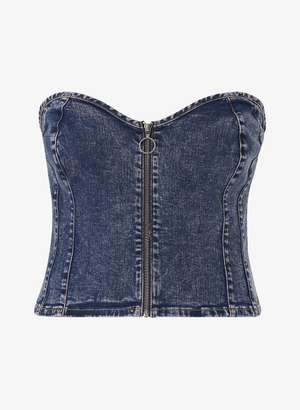Toppurinn er úr mjúku gallaefni og er með saumum að framan sem minna á korsett.