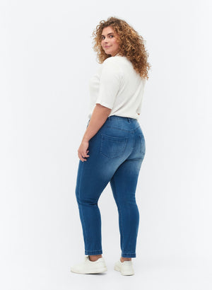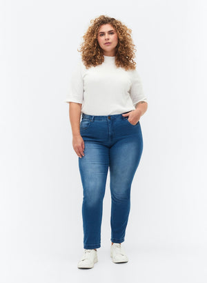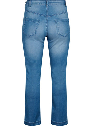 Nýr fallegur galla ljósblár litur af vinsælu Emily buxunum frá Zizzi.