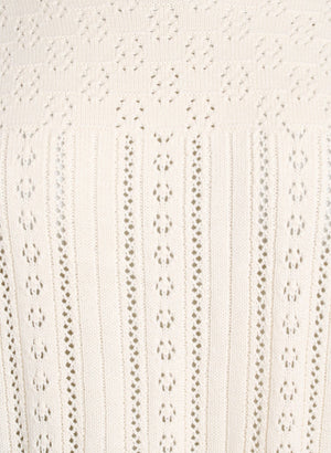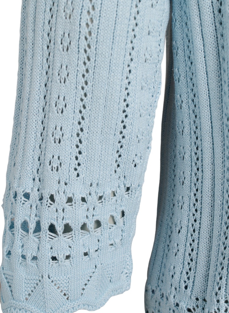 Virkilega fallegt mynstur í peysunni í hekluðum stíl.