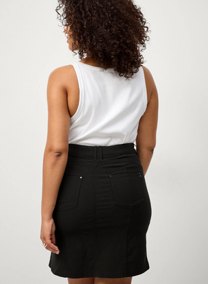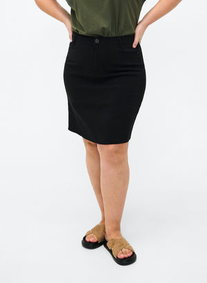 Þægileg teygja er í pilsinu og svo með rennilás og tölu.