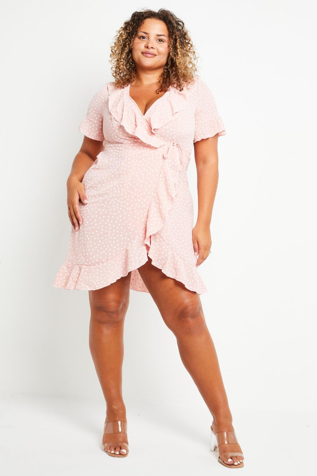 Þunnur og léttur siffon kjóll með lokuðu Wrap sniði.