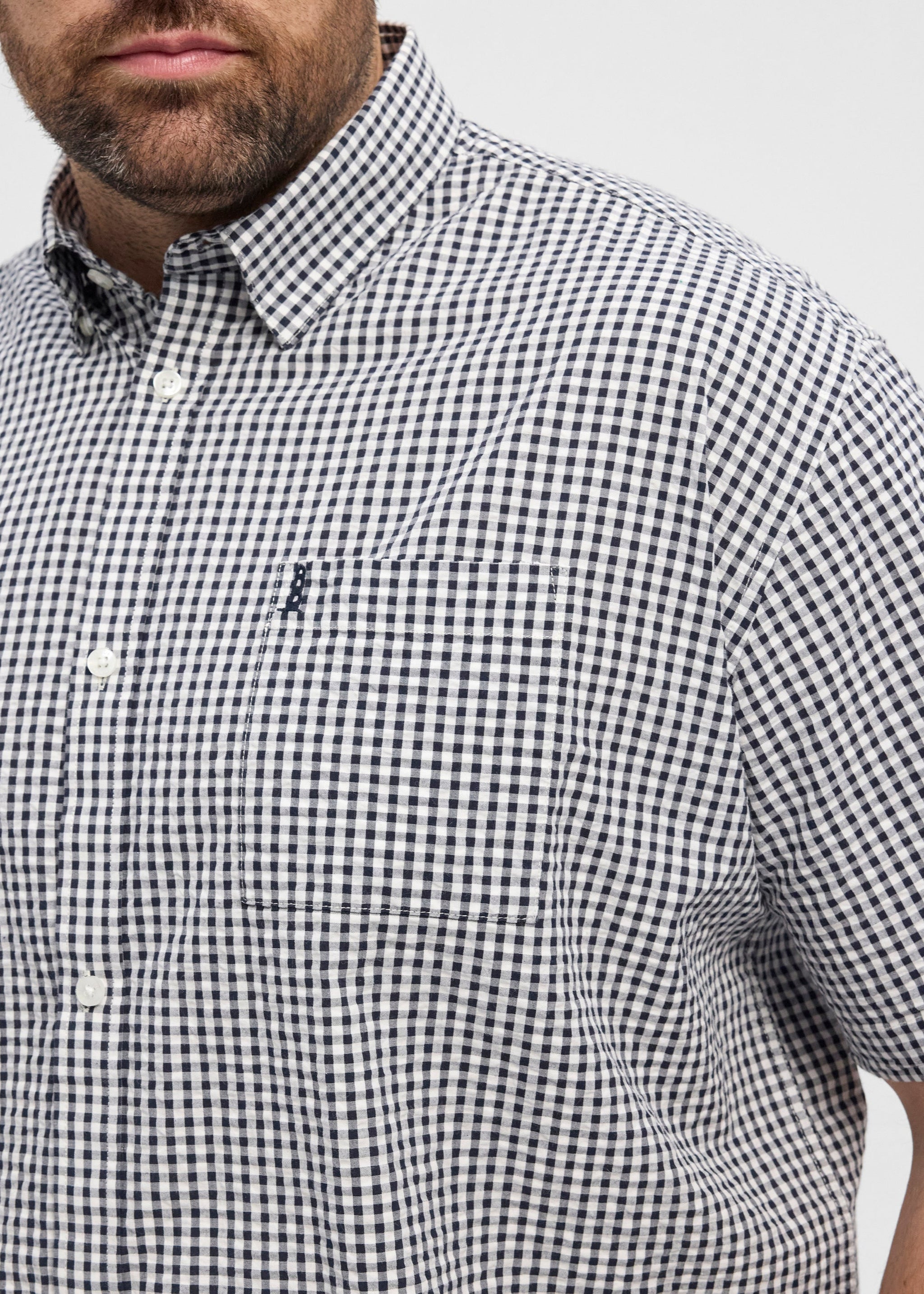 Svört og hvít köflót létt stutterma skyrta frá danska merkinu North Latitude