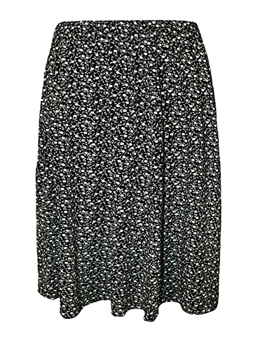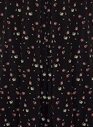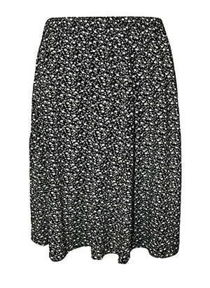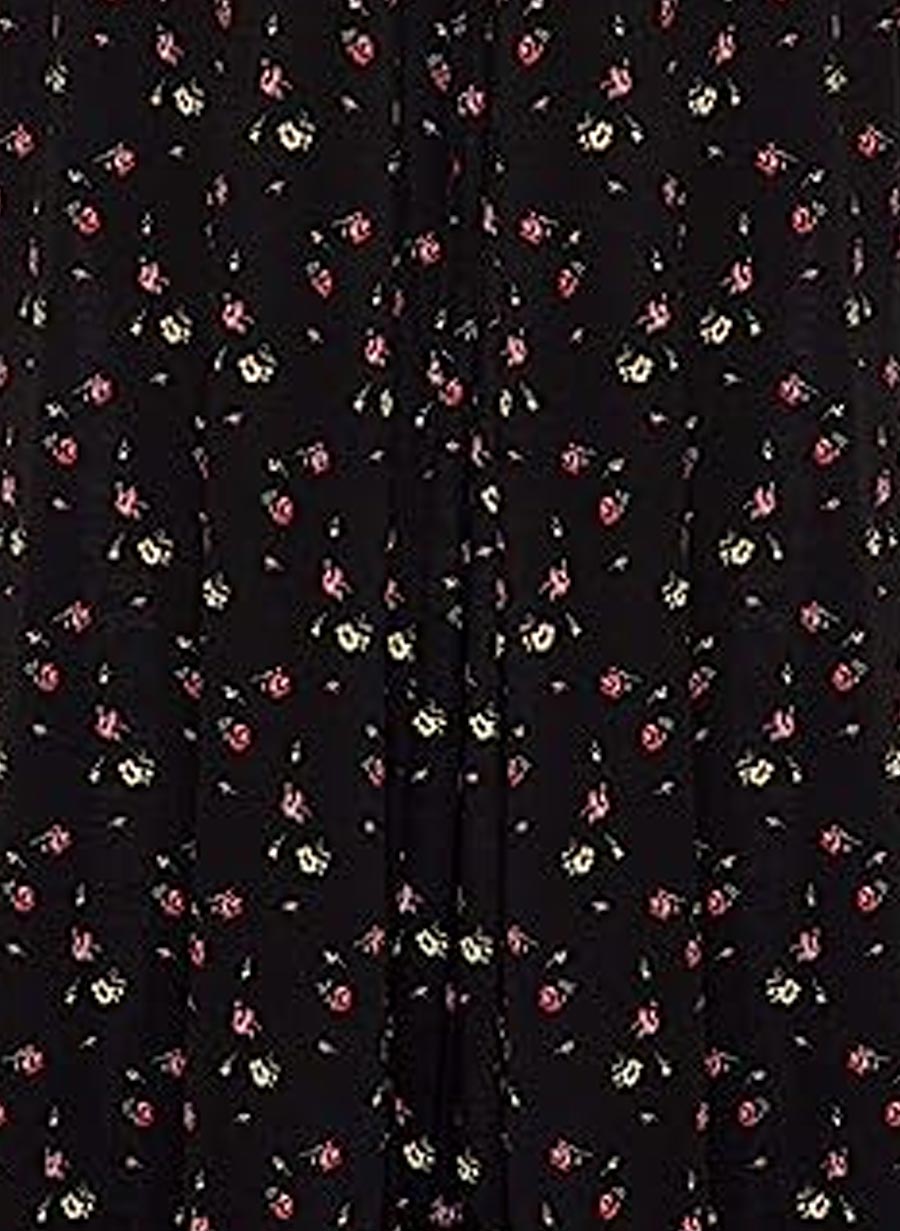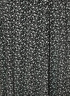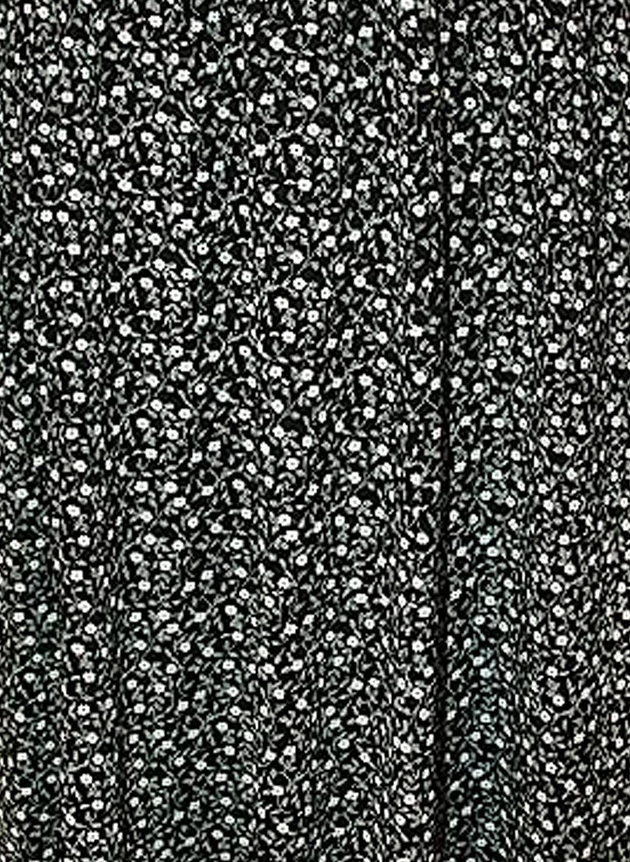 Efnið er svart í grunninn með fínlegu blómamynstri.