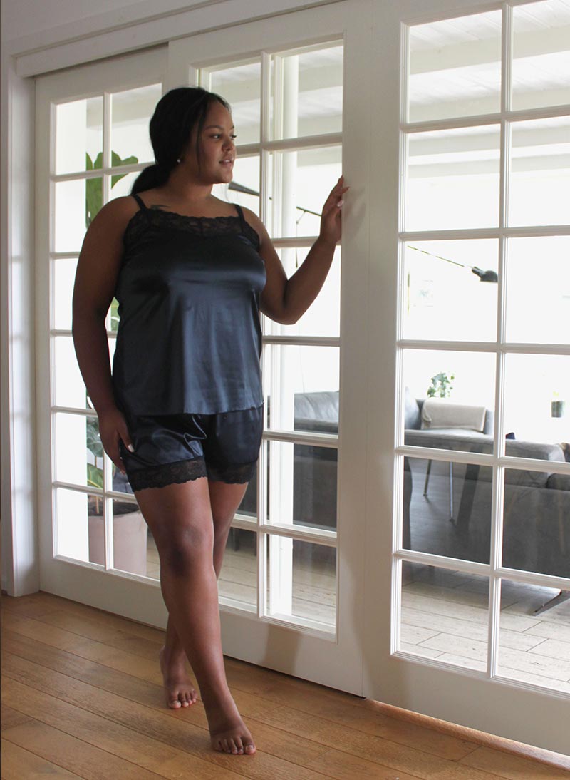 Þessi dásamlegu teygjanlegu satín náttstuttbuxur frá danska merkinu Plaisir eru ómótstæðilegar.
