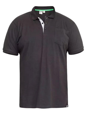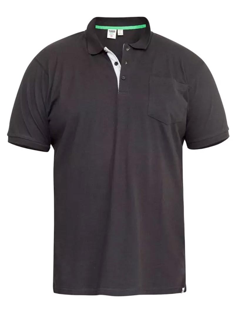 Kragi og þrjár tölum í hálsmálinu og ásamt einum vasa að framan.