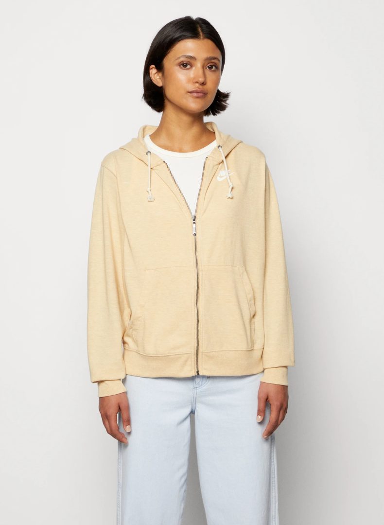 Klassísk rennd hettupeysa með góðum vösum að framan, sniðið er laust og létt. Prentað logo vinstri megin við rennilás.