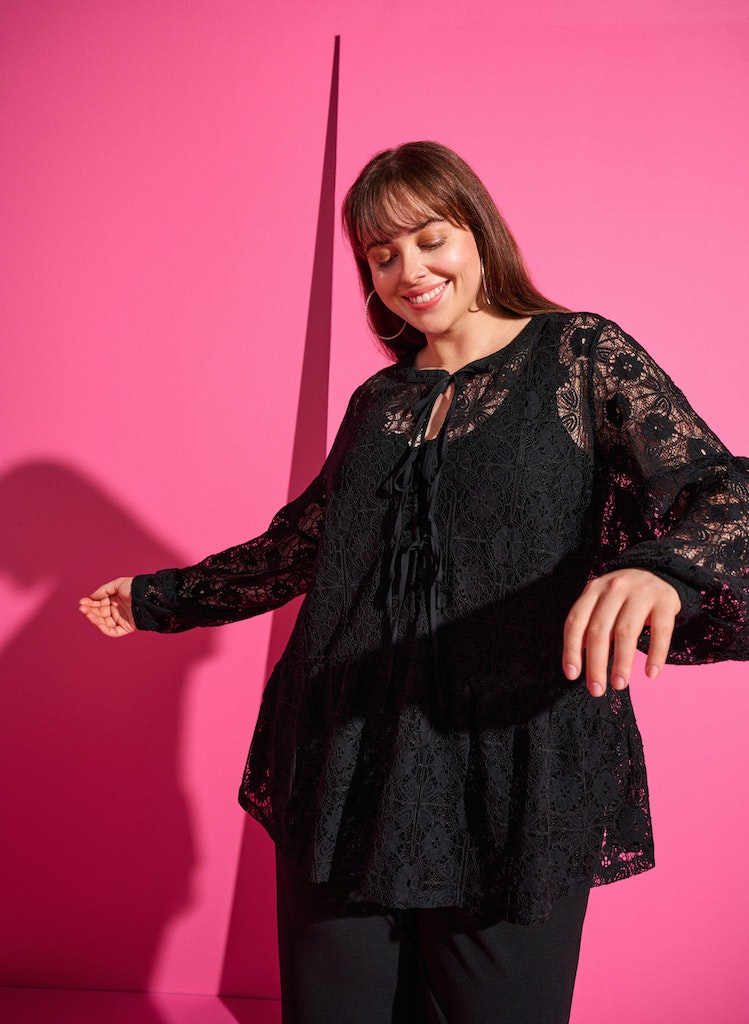 Blúndan er með fallegu grófu mynstri og efnið gefur örlítið eftir.