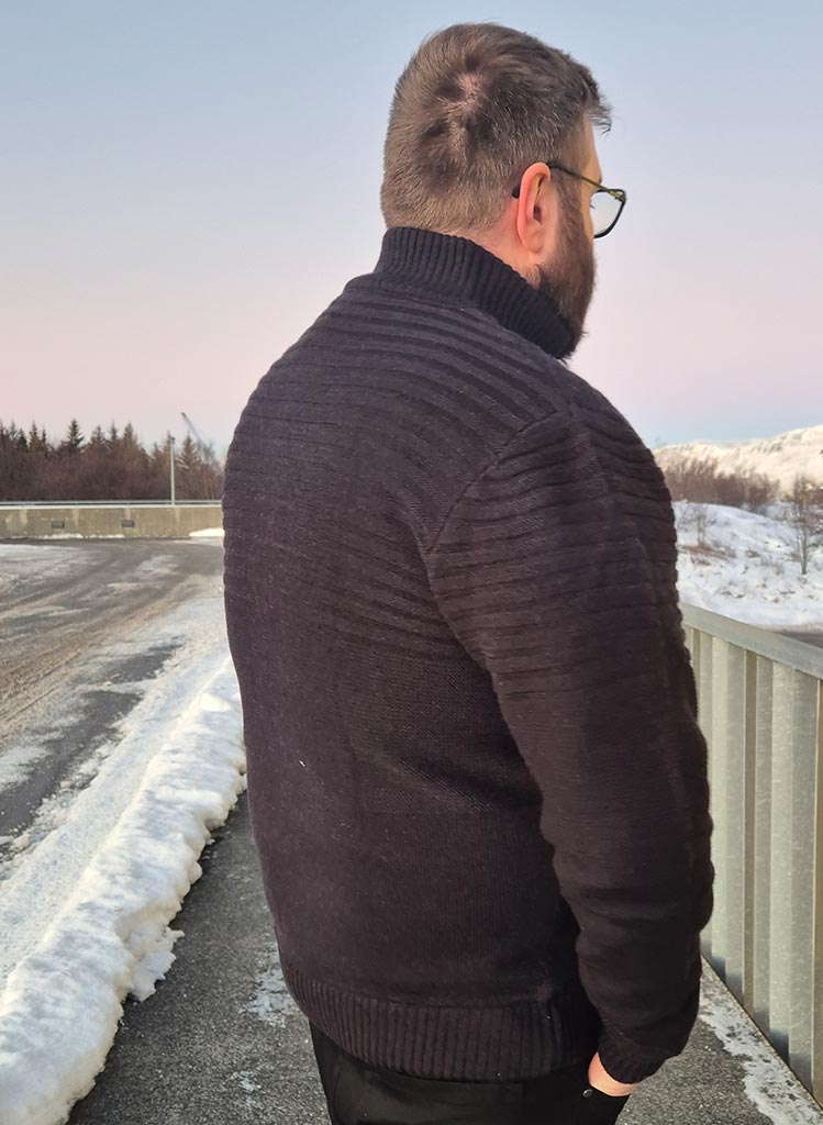 Einstaklega hlý jakkapeysan úr er tveggjalaga ullarblöndu.