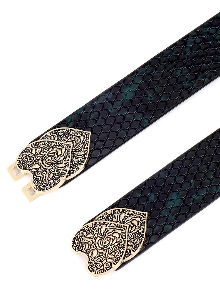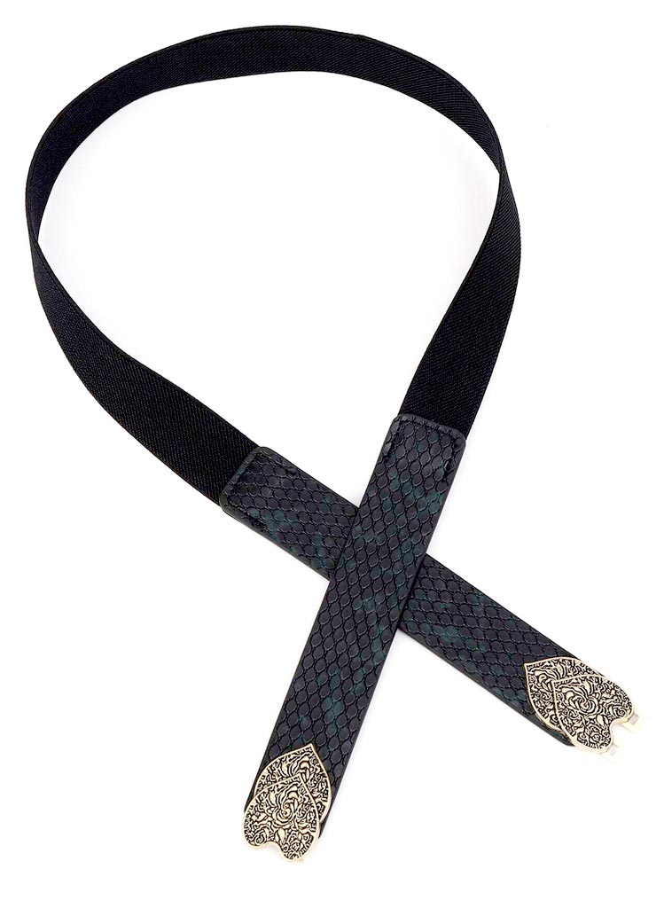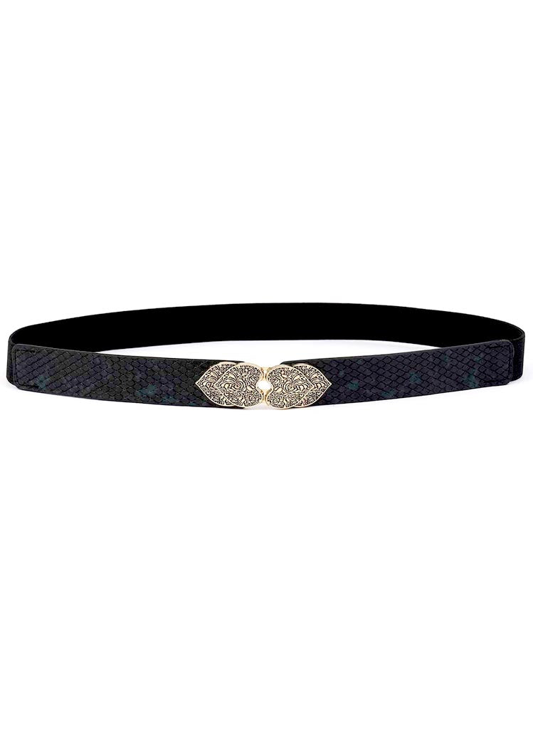 Svart teygjubelti með fallegri skrautsylgju að framan.