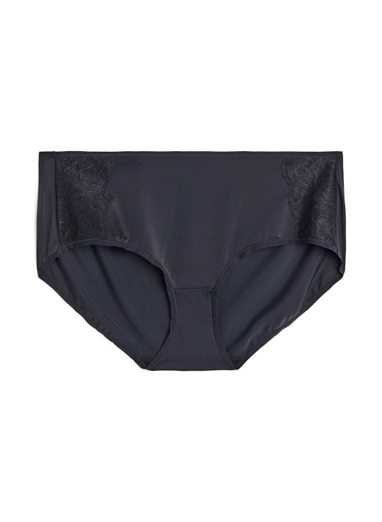"Regular waist" og blúndu lína á hliðunum.