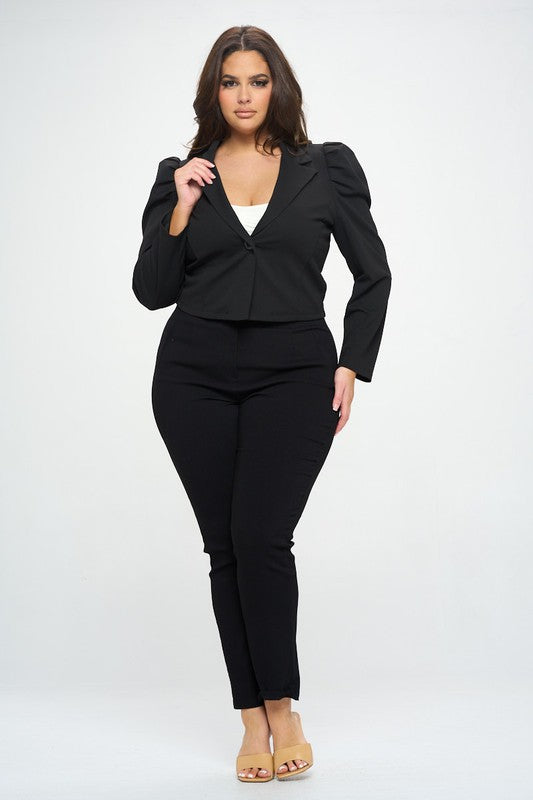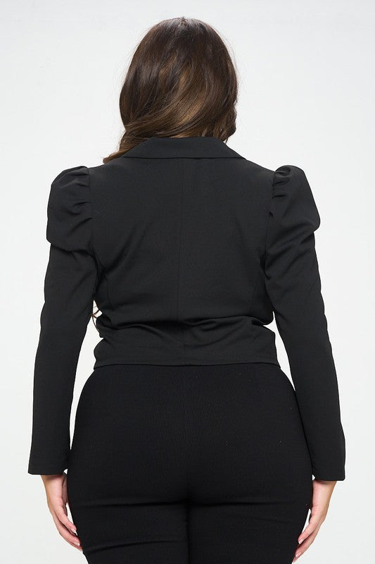 Ótrtúlega sætur stuttur blazer jakki með smá púff og rykkingum á öxlunum.