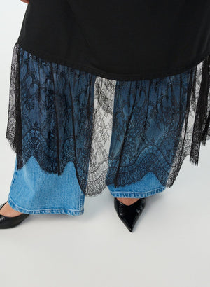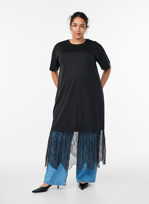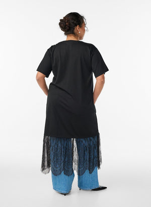Fallegur svartur bolakjóll með blúndu frá Zizzi