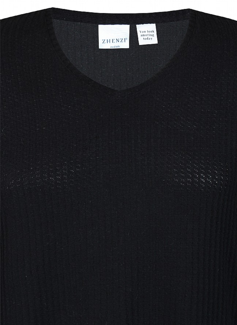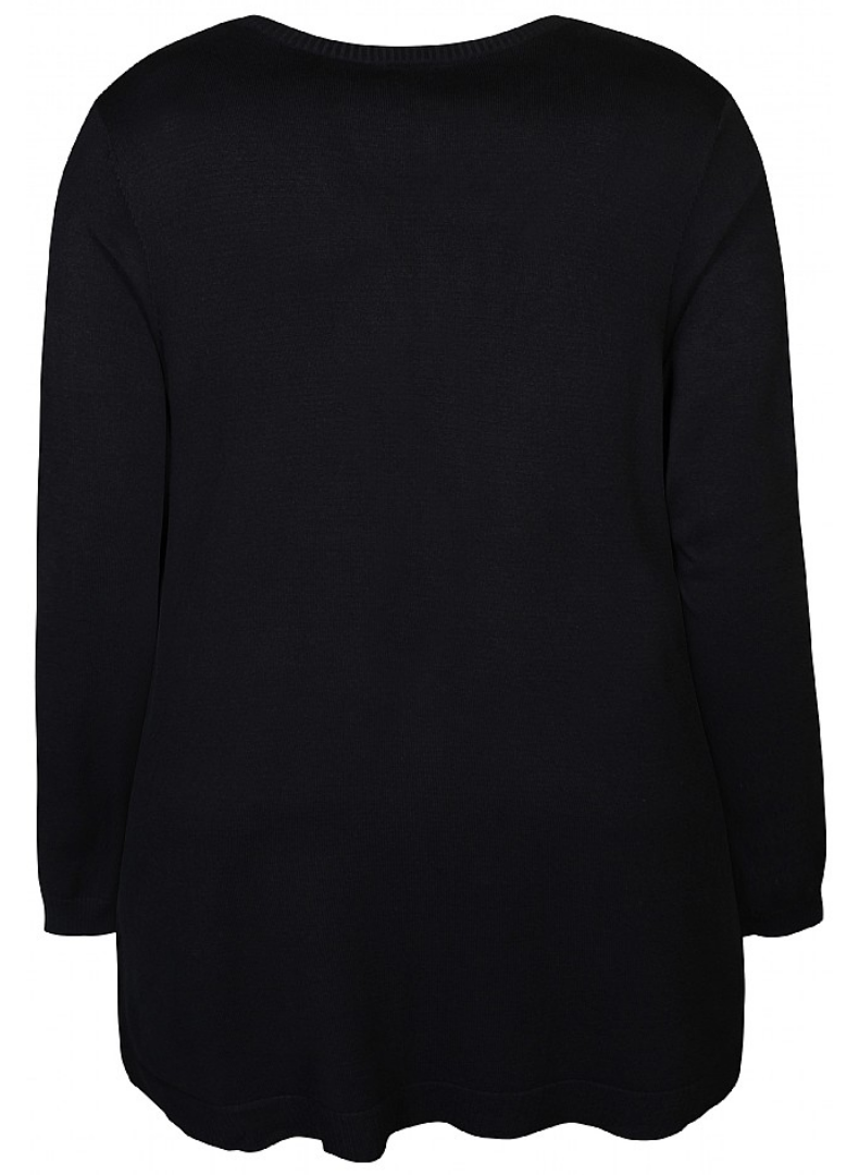 Efnið í peysunni er ofið úr 70% viscose og 30% polyester og teygist vel.