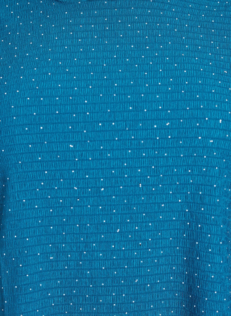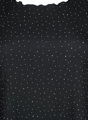 Toppurinn er þakinn glitrandi smáum steinum og efnið með skemmtilegri og teyganlegri rifflaðri áferð.