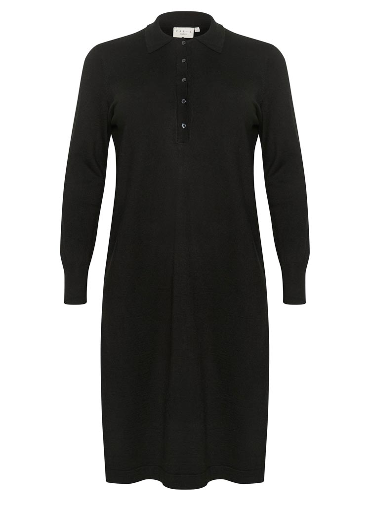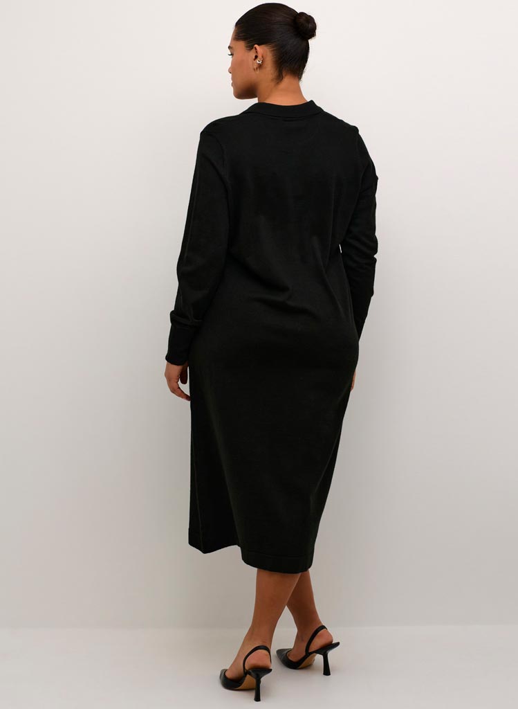 Kjóllinn er fínlega prjónaður úr teygjanlegu efni 52% Acryl, 27% polyamide og 21% ull.