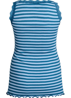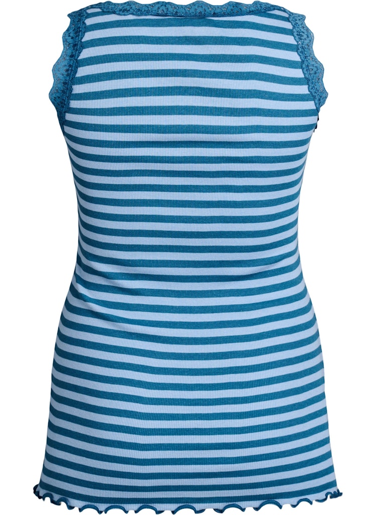 Fínleg blúnda við hálsmál og falleg riffluð áferð í efninu.