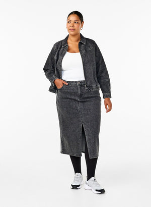 Töff gallajakki frá danska merkinu Zizzi ~ Jakkinn er í stíl við gallapils, gallabuxur og gallasmekkbuxur sem koma úr sömu vörulínu Zizzi.