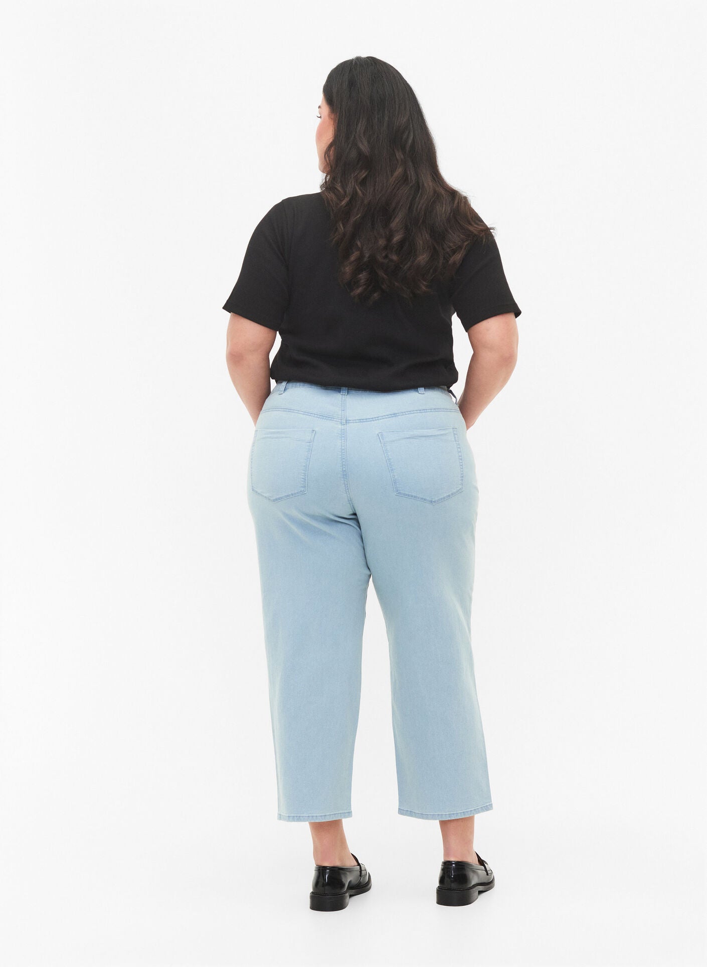 Góðar uppí mitti og beinar skálmar í cropped sídd og fallega ljósbláar - fullkominn litur fyrir sumarið.
