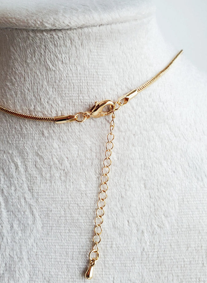 Keðjan er úr málmblöndu og gyllingu.