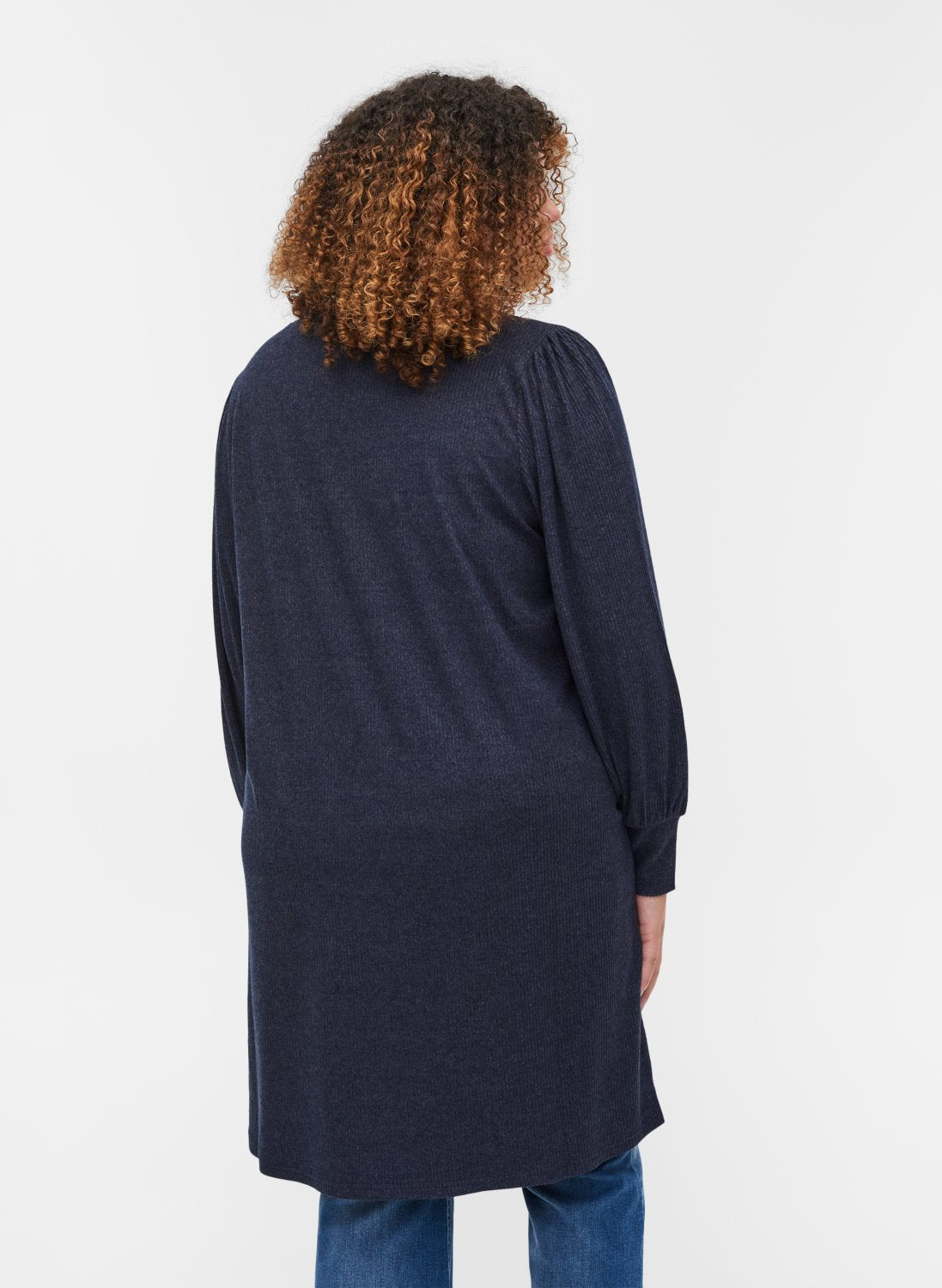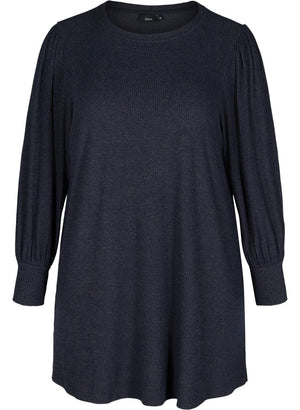 Rúnað hálsmál, stroff neðan á ermum og laust beint snið.