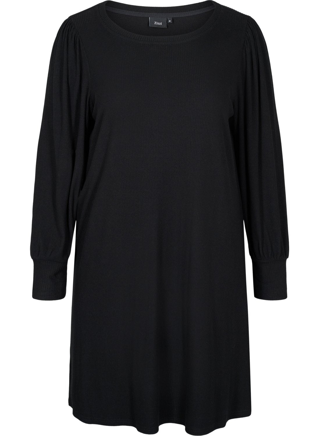 Kjóllinn er úr blönduðu Viscose efni með rifflaðri áferð.