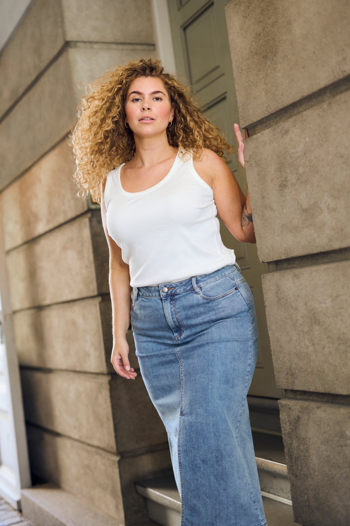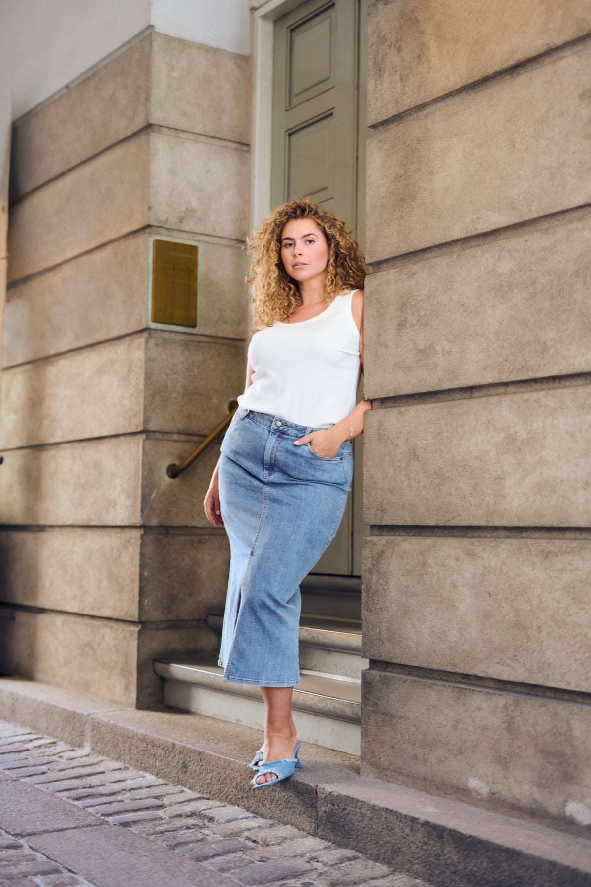 Fallegt og vandað sítt gallapils frá danska merkinu Kaffe Curve.