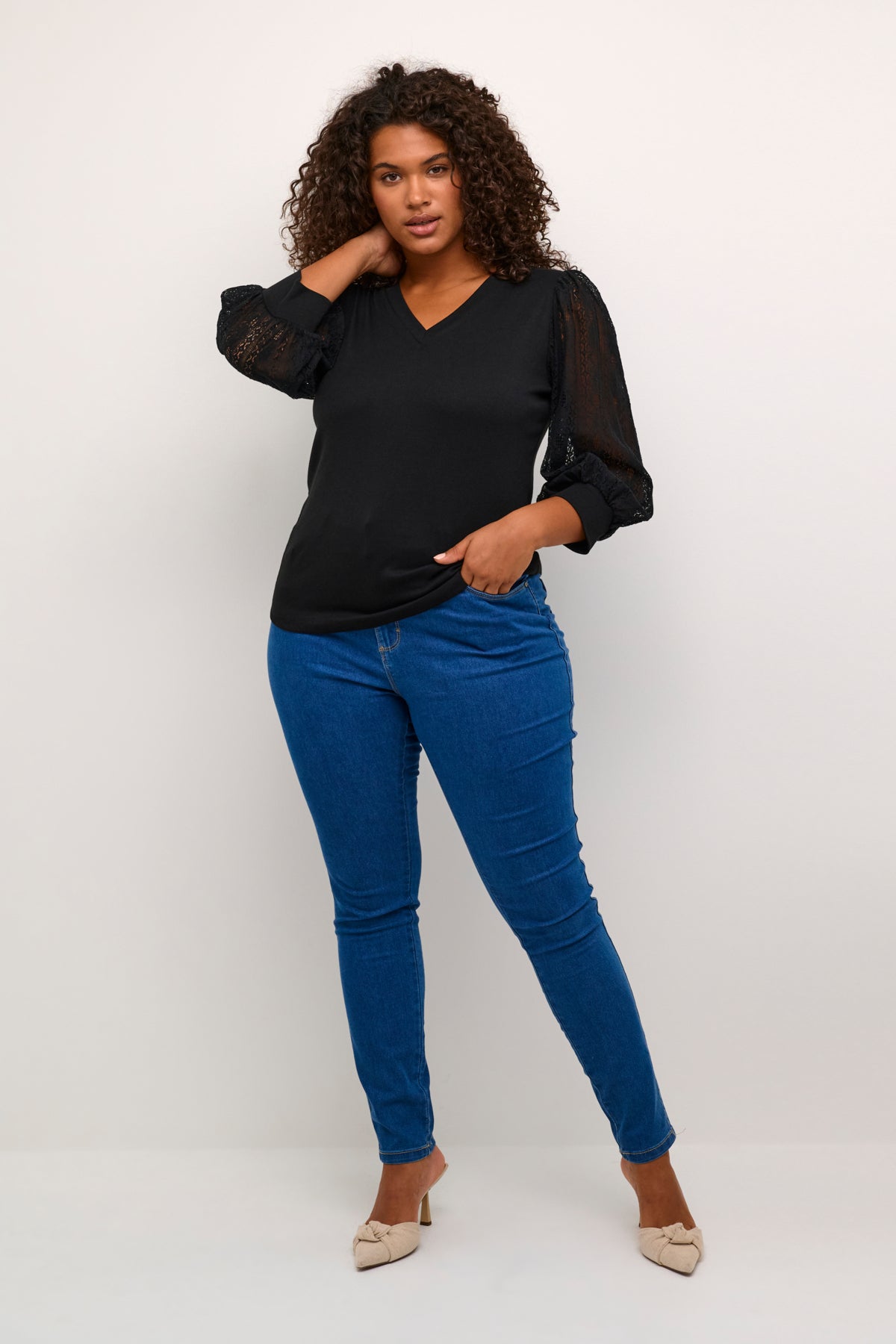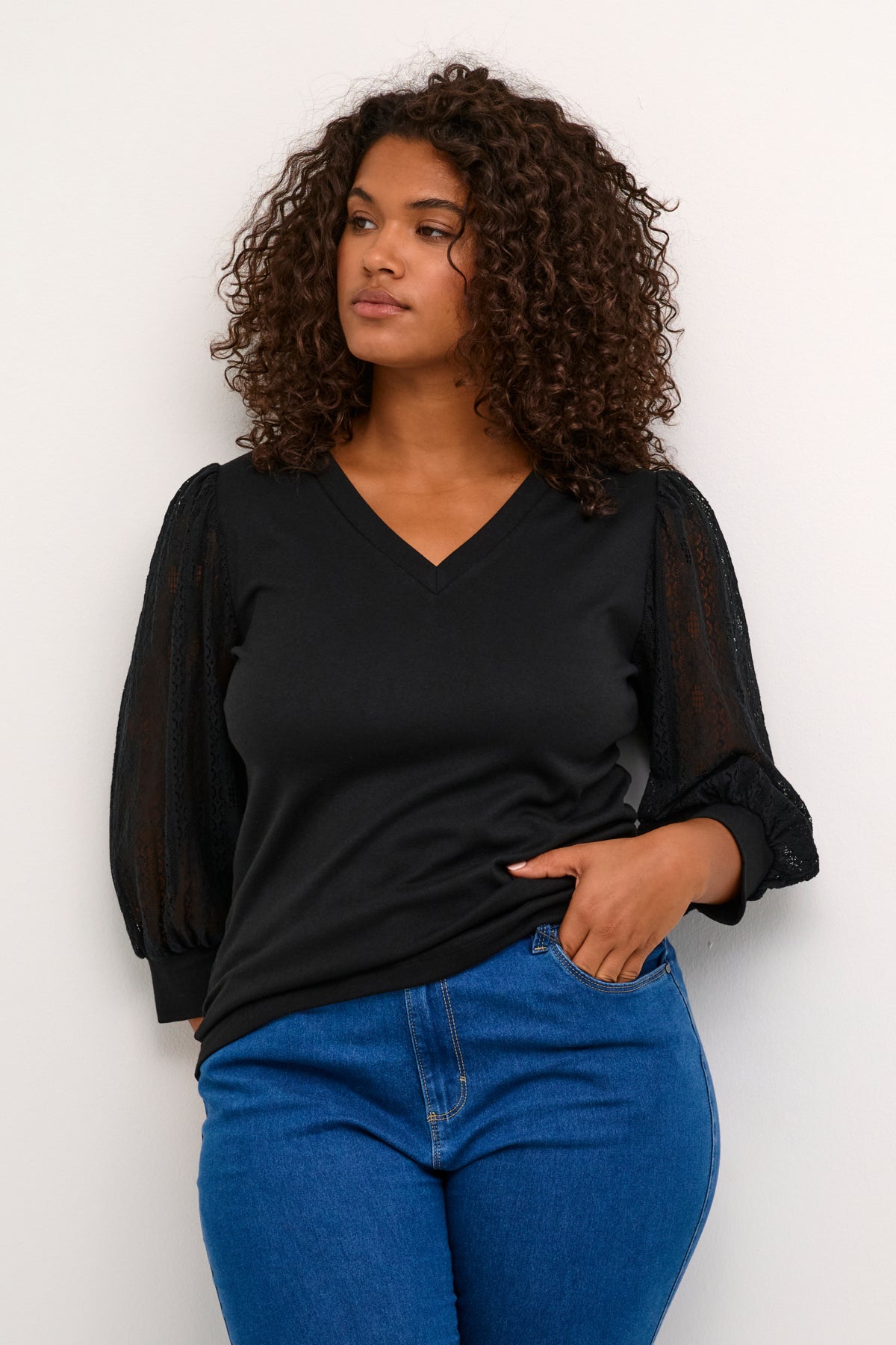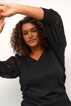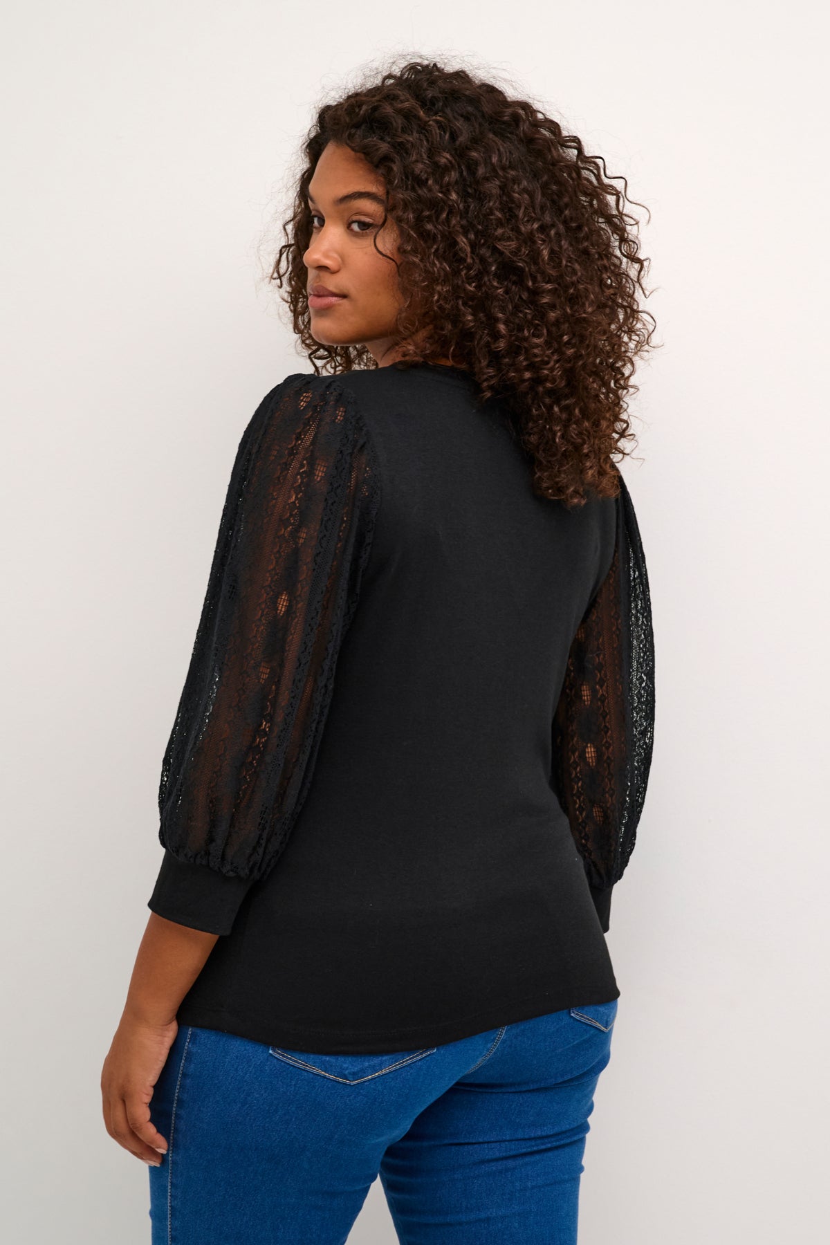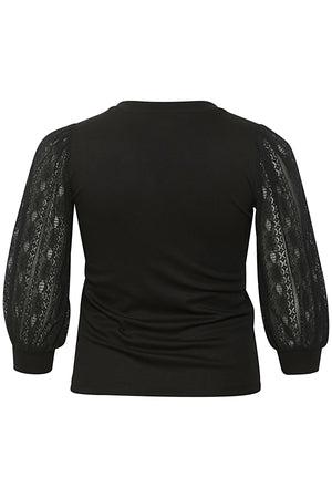Toppurinn er úr mjúku teygjanlegu viscose efni og ermarnar eru lausar úr fallegri blúndu og stroffi að neðan.